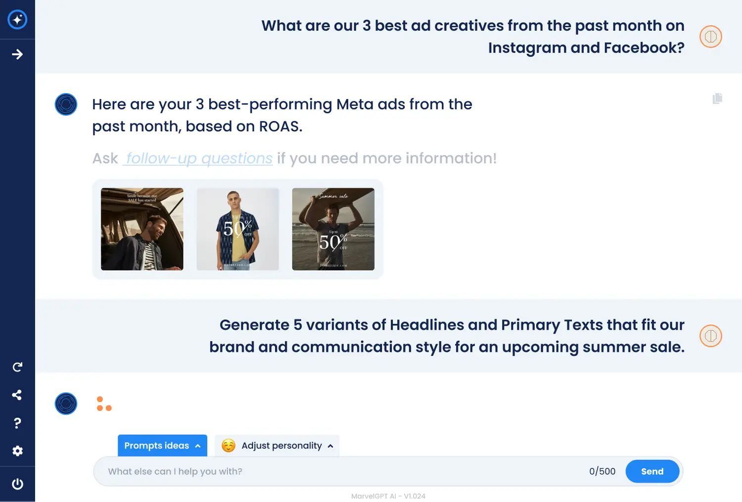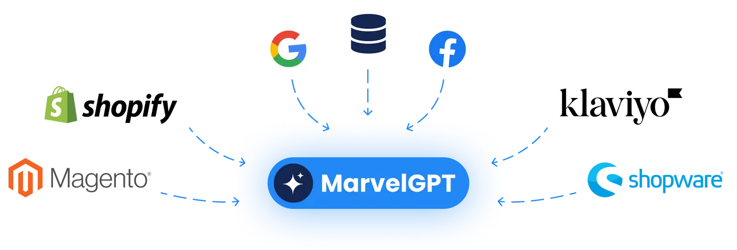 Currently, MarvelGPT integrates with Meta (Facebook) Ads, Google Ads, and e-commerce CMS platforms like Shopify. We are continually working on expanding the platforms we support.