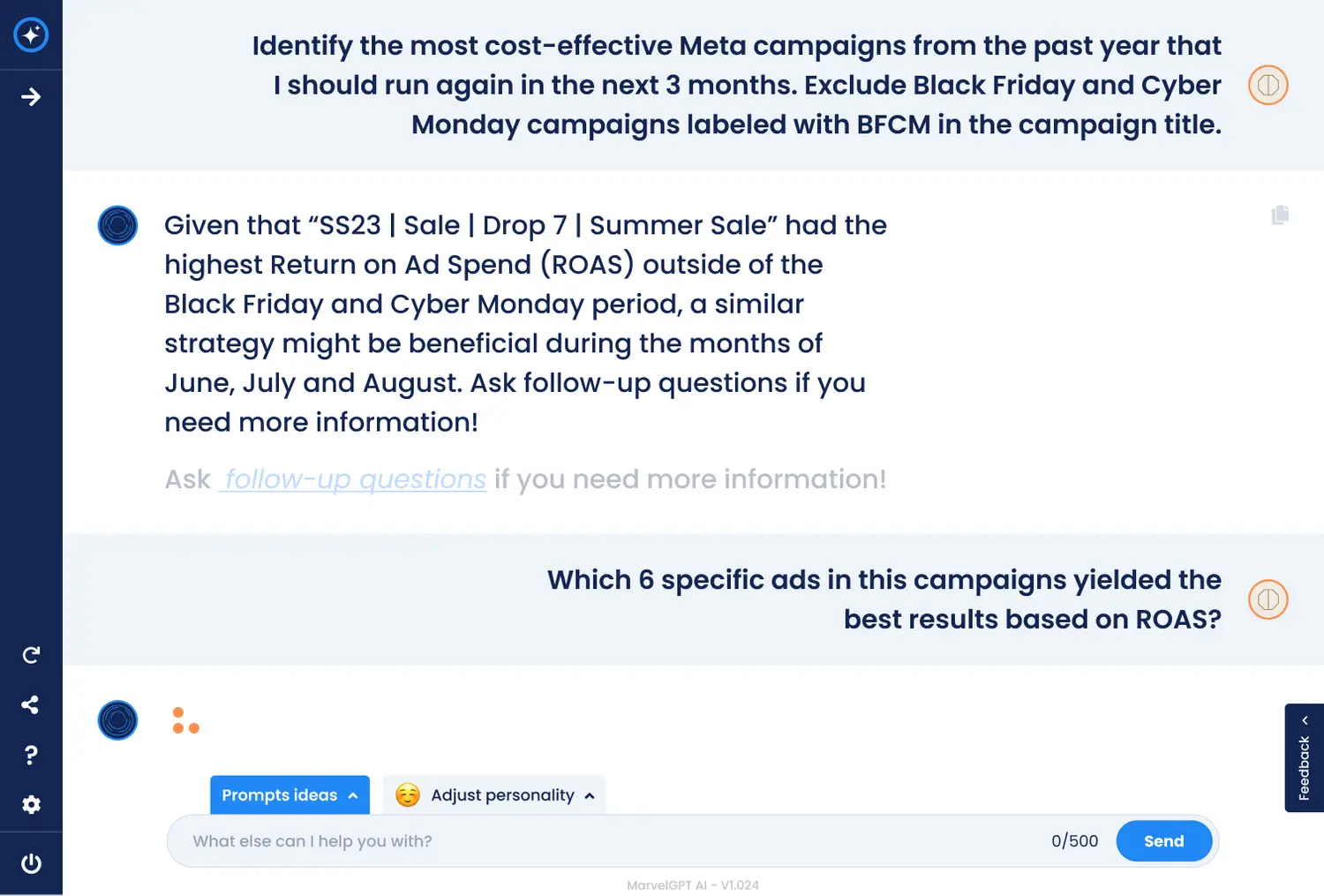 MarvelGPT works with leading marketing channels like Meta and Google Ads, as well as major Ecommerce CMS platforms like Shopify. This centralized solution eliminates the need for managing multiple dashboards, saving valuable time, and allowing for cross-channel analyses that can significantly enhance decision-making.